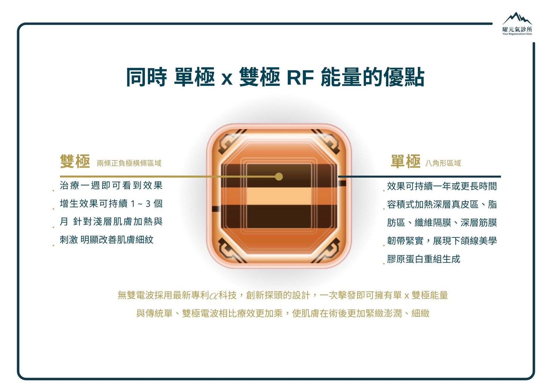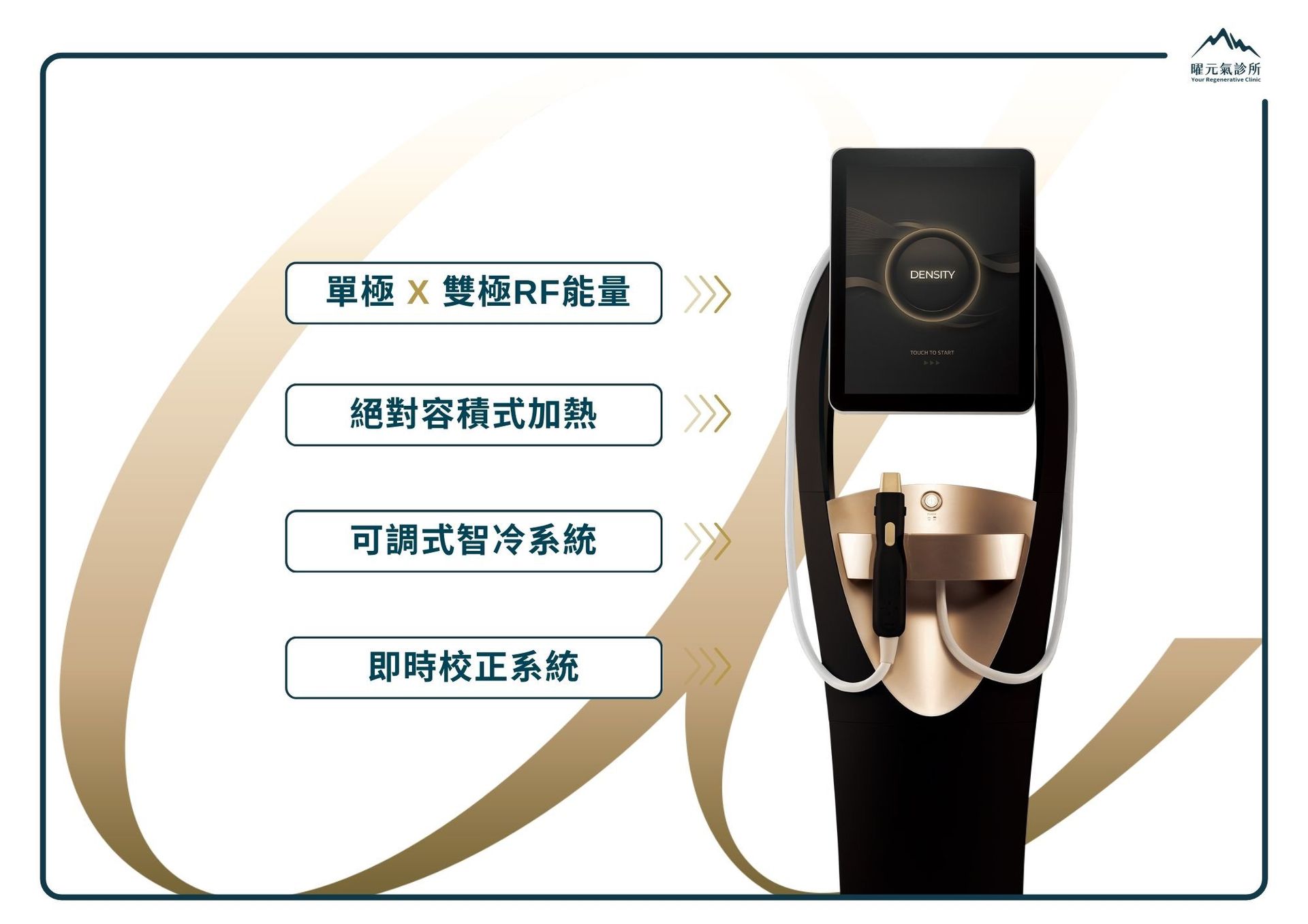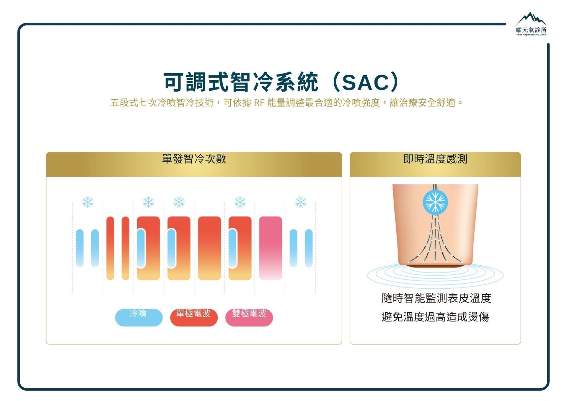 專利 Coolwaves™ 冷波技術,將能量精準作用於真皮層與皮下組織,在舒適過程中完成膠原激活與脂肪雕塑,透過深層熱效應重塑緊實、立體的精緻輪廓。在曜元氣,依臉型比例與鬆弛型態判讀施作層次與範圍,有感優雅的輪廓管理、自然拉提。